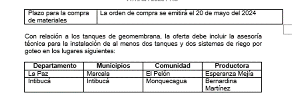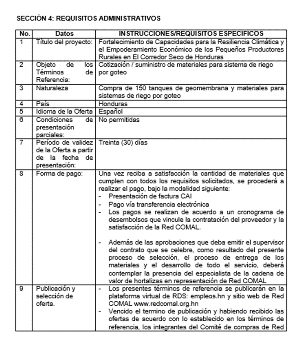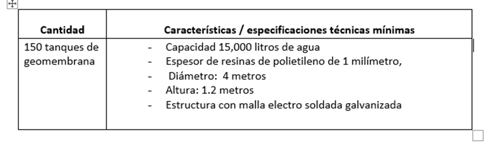 ADQUISICION DE 150 TANQUES DE GEOMEMBRANA PARA ALMACENAMINETO DE AGUA Y MATERIALES PARA SISTEMA DE RIEGO POR GOTEO– Red COMAL / PROYECTO ATN/GA-20351-HO