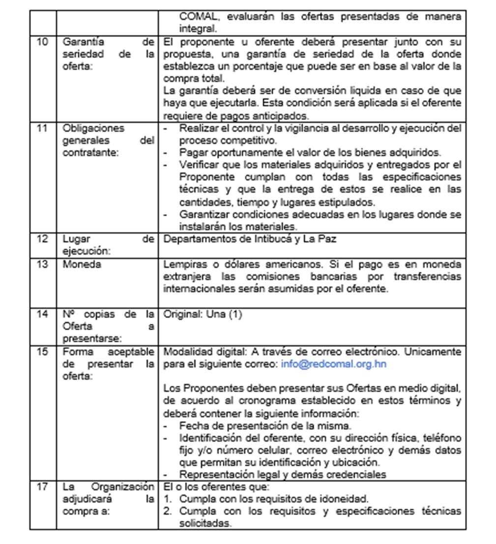 Los materiales deberán ser entregados a la Red COMAL a más tardar el 31 de mayo del 2024