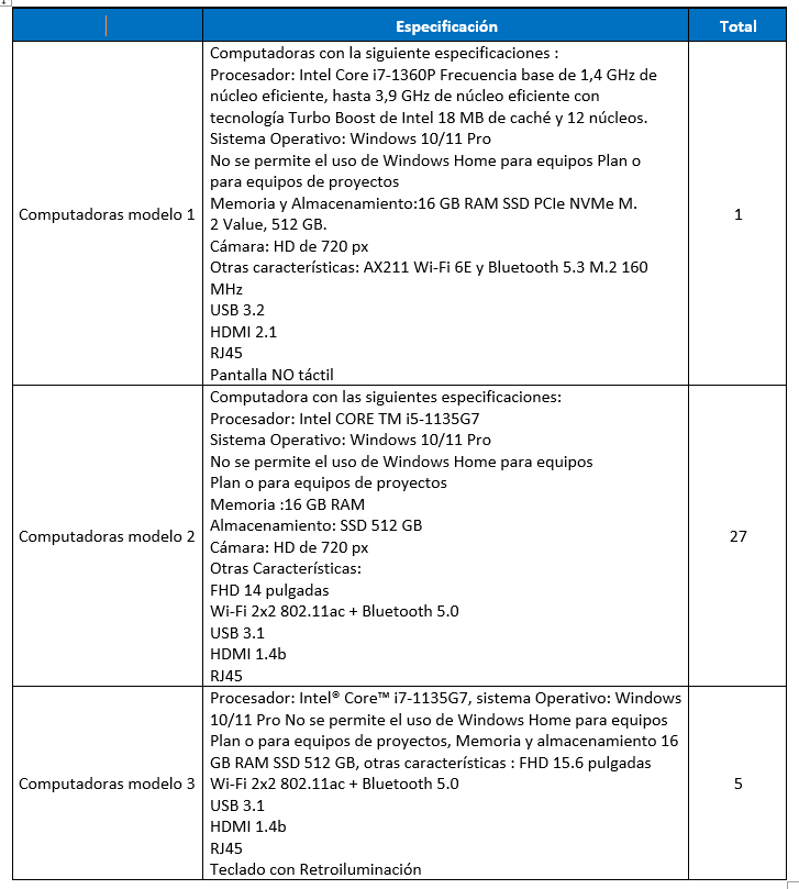 Adquisición de 33 computadoras laptop con las siguientes especificaciones: